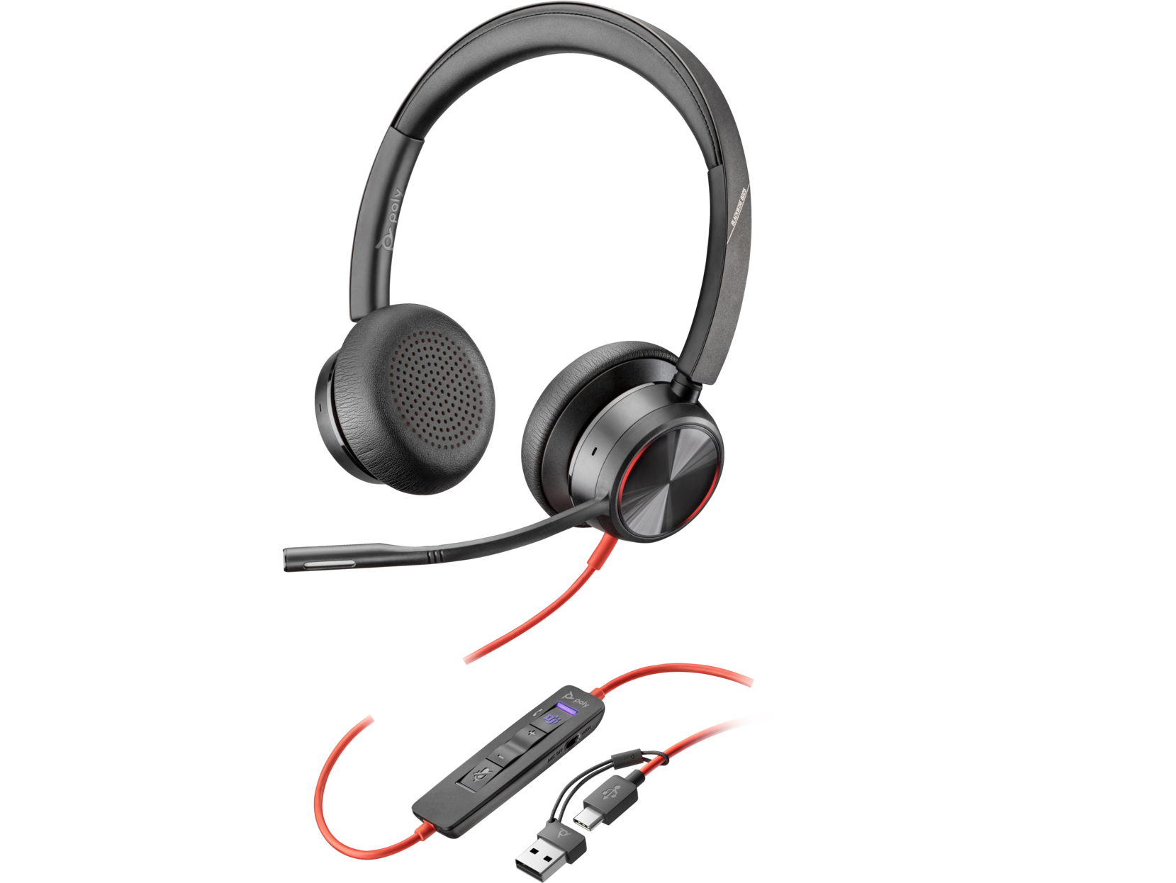 HP Poly Blackwire 8225 Stereo Microsoft Teams Certified USB-C Headset +USB-C/A Adapter, Black, 2yw